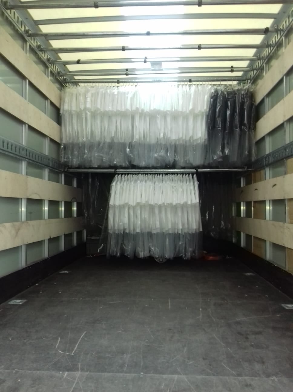 Realizujemy również specjalistyczny transport odzieży na wisząco dostosowanymi do tego celu pojazdami. Dysponujemy autami ze sztywną zabudową o wymiarach 485 × 220 × 230 cm ze specjalnymi drążkami do przewozu ubrań. Pozostawiamy do dyspozycji klientów 18 drążków do przewozu odzieży w 2 rzędach. Bezpieczeństwo powierzonego nam towaru jest dla nas priorytetem, dlatego nasze kontenery posiadają dodatkowe zabezpieczenia, aby zminimalizować ryzyko kradzieży towaru i dostępu osób trzecich